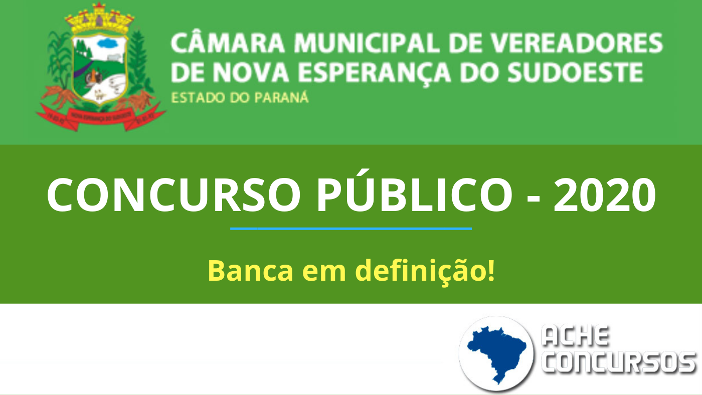 A Câmara de Nova Esperança do Sudoeste, localizada no interior do Paraná (PR), irá contratar profissionais para compor o quadro de servidores do órgão por meio de concurso público. A Comissão de Licitação, já formada, deverá nomear a empresa (banca) que organizará o certame em junho de 2020.