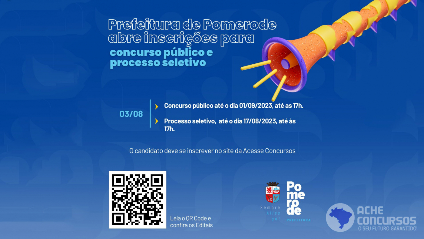 A Prefeitura de Pomerode, no estado de Santa Catarina, lançou o edital nº 44/2023 para a abertura do processo seletivo simplificado visando à formação de cadastro de reserva. As contratações serão realizadas de acordo com a demanda da Prefeitura.